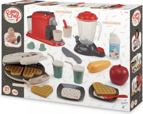 Objavte čaro varenia s našou darčekovou sadou domácich spotrebičov, ktorá obsahuje kávovar, vaflovač, mixér a 21 kusov príslušenstva.