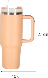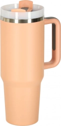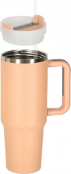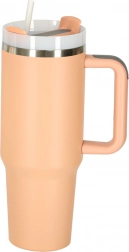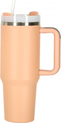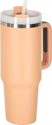 Veľký termálny hrnček so slamkou a rukoväťou 1,2L púdrovo ružová