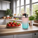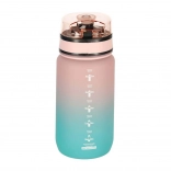 Ružovo-modrá fľaša na vodu je praktickým doplnkom pre tých, ktorí chcú sledovať príjem vody počas dňa. Pomocou zobrazeného mera sa s infografikou môžete lepšie kontrolovať, koľko vody ste už vypili a koľko ešte potrebujete doplniť. Maximálny objem je 600 ml, čo uľahčuje sledovanie vášho denného príjmu tekutín.