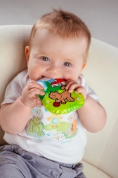 Vankúšik je vyrobený z bezpečných materiálov bez ftalátov a je certifikovaný pre deti od narodenia. Na výber je z viacerých roztomilých motívov zvieratiek, ktoré podporujú vizuálnu stimuláciu a prvé spoznávanie.