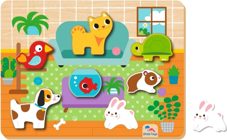 Vkladacie puzzle Mazlíčikovia je skvelý prostriedok na rozvoj zmyslových zručností detí. Obsahuje sedem odnímateľných dielikov, ktoré je potrebné správne umiestniť na základňu. Deti sa môžu tešiť na: