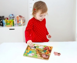 Ponorte sa do krásneho, pohodového dňa na farme s naším vkladacím puzzle. Výrobok sa skladá zo základne a siedmich odnímateľných dielikov, ktoré deťom umožňujú precvičovať zmyslové zručnosti a jemnú motoriku. Deti sa naučia trpezlivosti, zatiaľ čo objavujú rozmanitosť zvieracích priateľov.