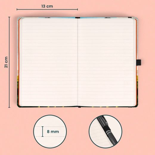 Vo vnútri nájdete 172 linajkovaných strán z kvalitného krémového papiera pre všetky vaše nápady a poznámky.
