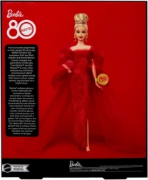 Táto zberateľská Barbie k 80. výročiu firmy Mattel oslavuje jej bohaté dedičstvo. Elegantný štýl, ikonické dizajny a slávnostné výročné vydanie robia z tejto bábiky skvelý zbierateľský kúsok.