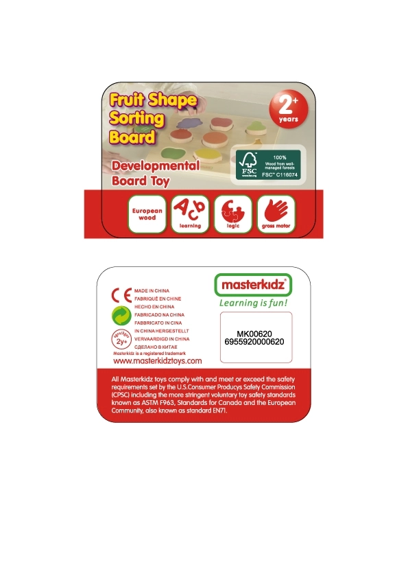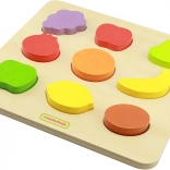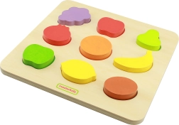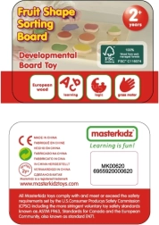 Triedička tvarov Farebné Ovocie od značky Masterkidz je skvelá drevená hračka pre deti s mnohými účelmi. Nielenže zabezpečí zábavu, ale taktiež umožní učiť sa názvy ovocia a podporuje konzumáciu ovocia. Dieťa musí zladiť jednotlivé plody s odpovedajúcimi otvormi na drevenej doske, čo vyžaduje sústredenie a analýzu tvarov. Táto činnosť prispieva aj k rozvoju koordinačných schopností.