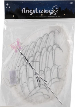Súčasťou je aj štýlová palička s motýlikom a stuhami, ktorá doladí anjelský alebo vílí kostým. Set je skvelý na karneval, maškarný bál, školské besiedky, fotenie či domáce hranie na rozprávky. Jednoducho sa nasadzuje a vďaka univerzálnej veľkosti dobre sedí väčšine detí.