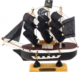 Svet pirátov ožije vo vašej domácnosti s týmto dekoratívnym modelom pirátskej lode. Tento malý, ale detailne prepracovaný model pripomína slávne korzárske lode z dôb Zlatého veku pirátstva. Svojou trojsťažňovou konštrukciou, čiernymi plachtami a charakteristickou lebkou na vlajke pôsobí dramatickým dojmom.