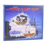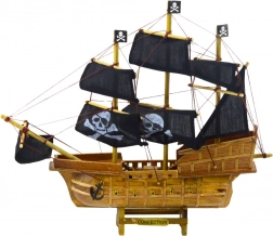 Model trojsťažňovej plachetnice v pirátskom štýle zaujme každého milovníka morských dobrodružstiev. Navrhnutý podľa legendárnych korzárskych lodí zo 17. a 18. storočia, tento model ponúka prírodný drevený trup s bočnými imitáciami diel a výraznou líniou zádě a predku. Čierne látkové plachty s potlačami lebky a skríženými hnátmi i pirátske vlajky dávajú lodi neodolateľný, charakteristický vzhľad, pripomínajúci morských lapkov a legendárnu voľnosť na otvorenom mori.