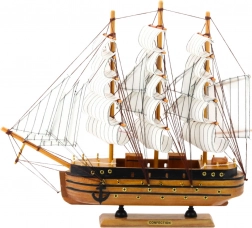 Tento drevený model historickej plachetnice zaujme detailným spracovaním a štýlovým dizajnom, ktorý mu dodáva kúzlo dávnych moreplaveckých výprav a dobrodružstiev. Plavidlo disponuje klasickým oblúkovým trupom, trojsťažníkovou konštrukciou a bielymi textilnými plachtami. Vďaka drevenej základni je možné model umiestniť na poličky, komody či stoly, kde sa stane neprehliadnuteľnou ozdobou.