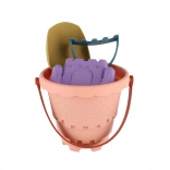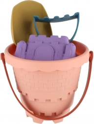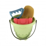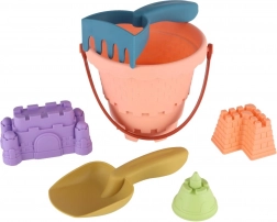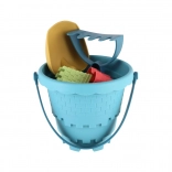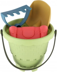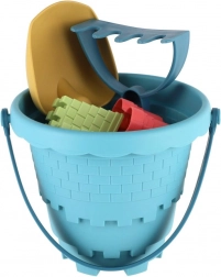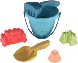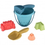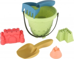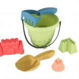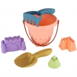 Vedierko, lopatka, hrabličky a tri formičky na kreatívne stavaníe a tvarovanie piesku v jednej ľahkej sade.