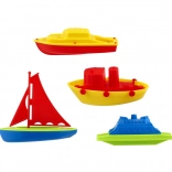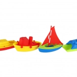 Táto praktická sada obsahuje štyri plastové lodičky v rôznych tvaroch a farbách, vrátane plachetnice a motorových člnov. Lodičky sú ľahké, odolné a dobre padnú do malých detských rúk. Vďaka plávajúcej konštrukcii sú perfektné do vane aj do detského bazénika.