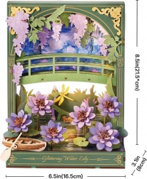 Ponorte sa do sveta umenia a relaxácie s naším unikátnym 3D modelom Trblietavých Leknín inšpirovaným slávnymi Monetovými dielami. Po zostavení táto skladačka predstavuje čarovnú scenériu s detailne prepracovanými kvetinami, loďkou a dreveným mostíkom, ktoré navodia atmosféru pokoja a pohody. LED podsvietenie dodáva dekorácii nezameniteľnú magickú atmosféru, ktorá evokuje hru svetla pri západe slnka.