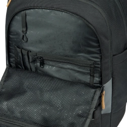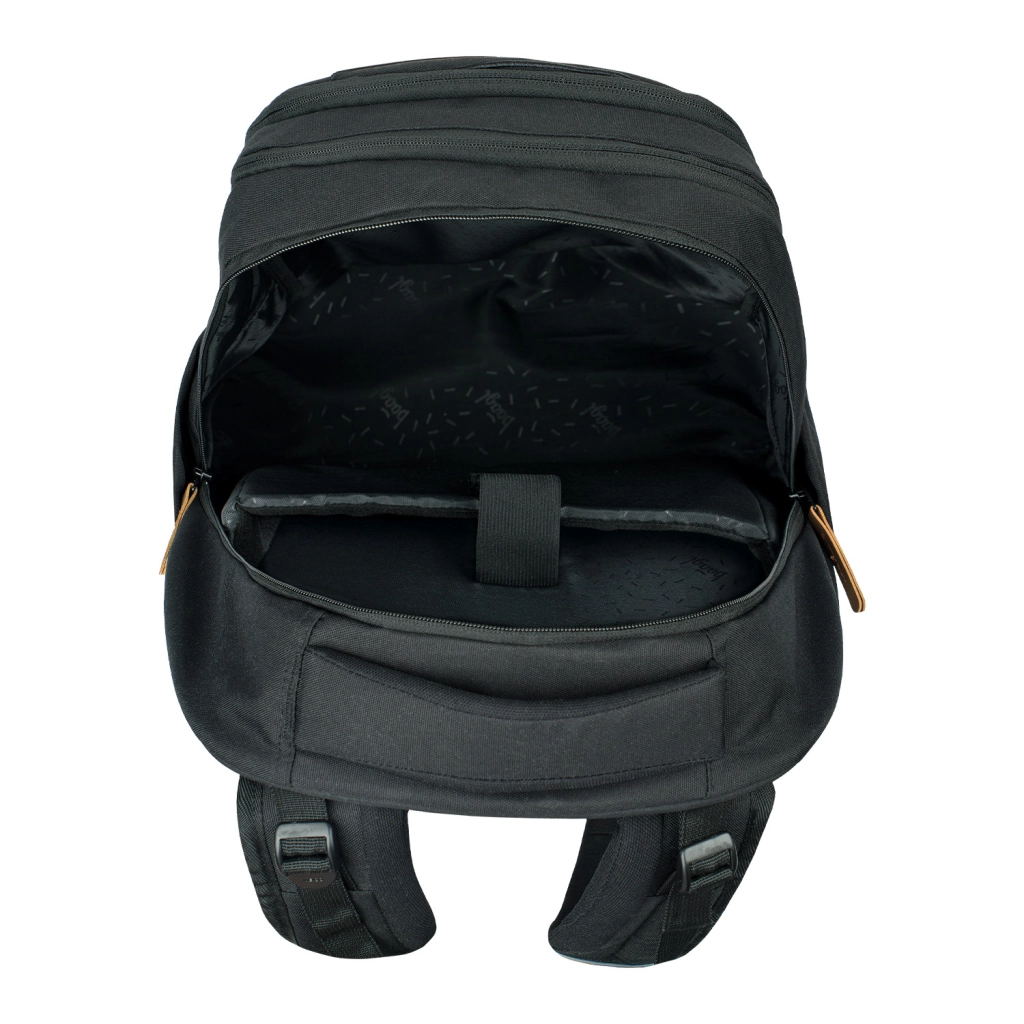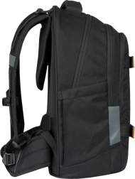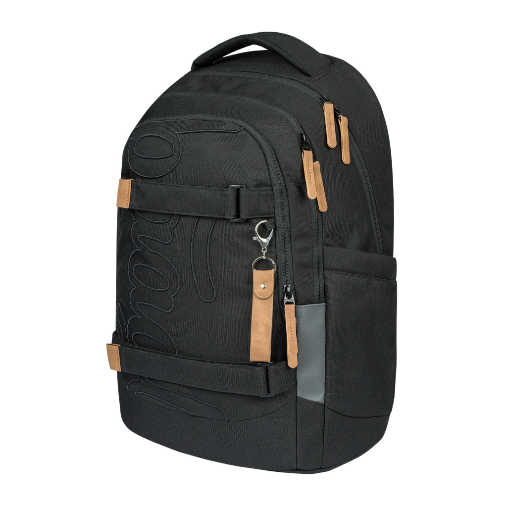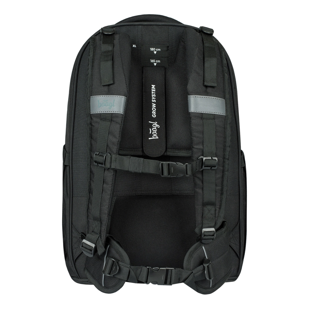 Trojdielny organizér obsahuje špeciálnu kapsu na notebook z jemného zamatového materiálu a praktické dvojcestné zipsy YKK pre ľahký prístup k obsahu. Bočné kapsy sú ideálne pre fľaše BAAGL a celý dizajn batohu doplňuje štýlový prívesok.
