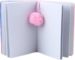 Tento unikátny zápisník oživí vašu spomienkovú knihu vďaka trojrozmernému efektu, ktorý priťahuje pozornosť a podnecuje predstavivosť. Predná obálka je zdobená trblietajúcim sa ružovým jednorožcom usadeným na holografickom pozadí, ktoré je vyplnené pohyblivými konfetami v podobe hviezdičiek. Ďalej je súčasťou záložka zakončená mäkkou bambuľkou, funkčný a dekoratívny prvok zároveň.