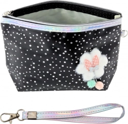 Štýlový perník a kozmetická taštička v čiernej farbe s trblietavými detailmi je praktickým doplnkom pre každodenné použitie. Univerzálny dizajn umožňuje použitie ako perník na školské potreby alebo ako kozmetická taštička pre skladovanie drobných doplnkov. Má pevný zips a praktické pútko s karabínkou, ktoré umožňuje pohodlné pripnutie k batohu alebo nosenie na zápästí.