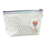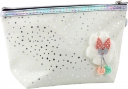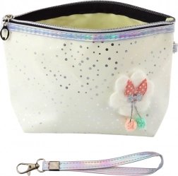 Taštička je vybavená spoľahlivým zipsom a pohodlným úchytom s karabínkou, čo umožňuje ľahké pripevnenie k batohu alebo nosenie na zápästí. Ozdobená je hodvábnou mašľou a pompomom, ktoré pridávajú dievčenský šarm, povrch je zdobený trblietkami, ktoré žiaria na svetle, čo vytvára atraktívny a moderný vzhľad.