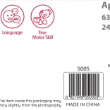 • 78 drevených kociek s obojstrannou potlačou na stavbu budov a učenie čísel a písmen.
