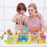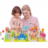 Vďaka tomuto kompletu deti môžu stavať typické mestské budovy ako škola, policajná stanica, hasičská zbrojnica, letisko, nemocnica, banka, reštaurácia, obchod so zvieratami a ďalšie. Hračka je vyrobená z prírodných, biologicky odbúrateľných a hypoalergénnych materiálov, čo zaistí maximálnu bezpečnosť.