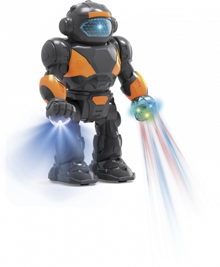 Zábava s týmto plastovým robotom o výške 22 cm nemá konca. Jednoduchým spustením ho uvediete do prevádzky a stane sa neoddeliteľnou súčasťou každej hry. Vhodný pre deti od 3 rokov, tento robot môže bojovať proti votrelcom alebo chrániť vesmírnu základňu. Je to skvelá hračka, ktorá rozvíja predstavivosť u malých detí aj ich motorické zručnosti. Aktiváciou robot ponúkne:
