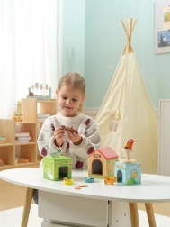 Táto hravá sada učí deti, ako zvieratá žijú a ako sa o ne správne postarať. S pomocou farebných drevených dielov, vyrobených z FSC certifikovaného dreva, deti rozvíjajú motoriku a koordináciu ruka-oko.