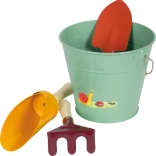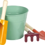 Nástroje zahŕňajú dve lopatky a jedno hrable, ideálne pre sadenie, kopanie alebo stavanie pieskových hradov. Kovový vedierko je perfektným pomocníkom pre prenášanie vody, piesku alebo hliny. Deti môžu tento set jednoducho prenášať kamkoľvek – na záhradu, pieskovisko aj na pláž.