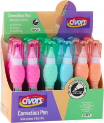 Rýchlo schnúca biela tekutina, ktorú korektor obsahuje, dokonale prekryje atrament aj guľôčkové pero. Objem 7 ml zaručuje dlhú životnosť a efektívne pokrytie. Balenie obsahuje 24 kusov, farba vyberaná náhodne.