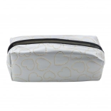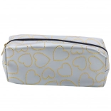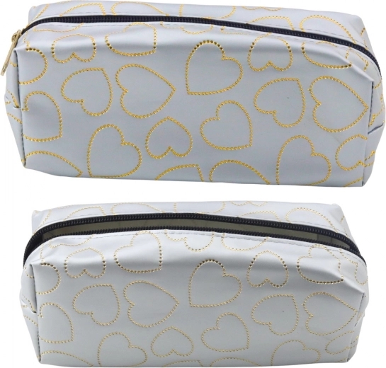 Štýlový a funkčný peračník v elegantnej striebornej farbe so vzorom zlatých sŕdc, ideálny pre študentov a každého, kto ocení praktické a módne doplnky.