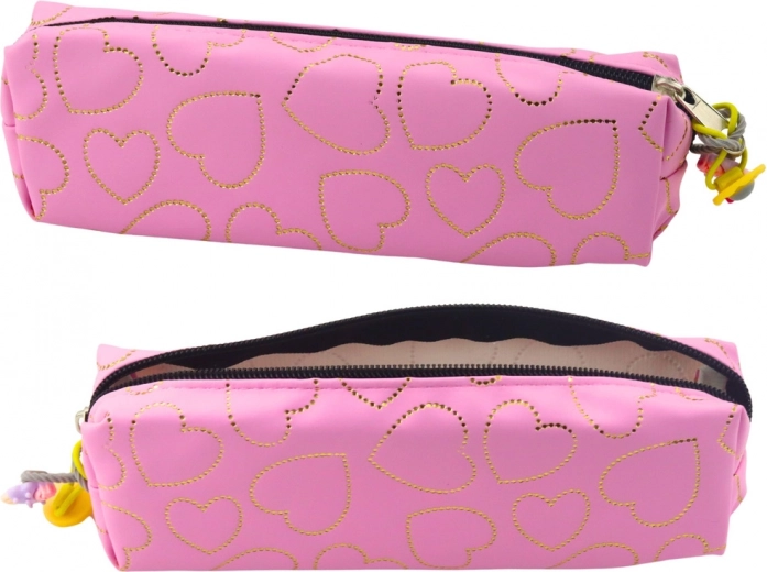 Ružový peračník so zlatými srdiečkami je štýlovým a praktickým doplnkom pre každého študenta alebo profesionála. Tento peračník sa vyznačuje svojou kompaktnou veľkosťou a ľahkou konštrukciou, vďaka čomu je skvelou voľbou pre uchovávanie najdôležitejších písacích potrieb, ako sú perá, ceruzky, fixky či zvýrazňovače. Jeho rozmery umožňujú ľahké prenášanie v batohu alebo taške do práce.