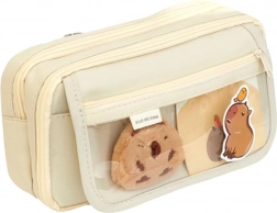 Dvojkomorové puzdro s rozkošnými doplnkami s kapibarou, ideálne pre školu aj každodenné použitie. Ponúka dva samostatné priečinky a priehľadné predné vrecko pre jednoduchú organizáciu a dekorácie.