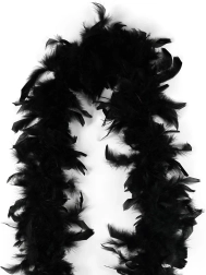 Čierne boa s perím je univerzálny a štýlový doplnok pre každú príležitosť. Jeho dĺžka 2 metre zaručuje, že sa ľahko prispôsobí vášmu outfitu.