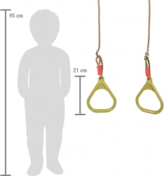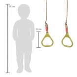 Posuňte detské hranice zábavy na maximum s gymnastickými kruhmi. Tieto kruhy sú veľkostne prispôsobené aj menším deťom, čo im umožňuje bezpečne trénovať najodvážnejšie akrobatické kúsky. Laná sú ľahko výškovo nastaviteľné a na koncoch majú kovové krúžky pre jednoduché zavesenie.