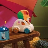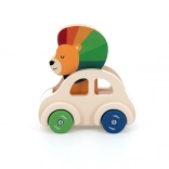 Drevené autíčko s klaksónom v tvare leva prináša radosť a zábavu do hry vášho dieťaťa. Vďaka klaksónu a farebným detailom rozvíja jemnú motoriku a predstavivosť.