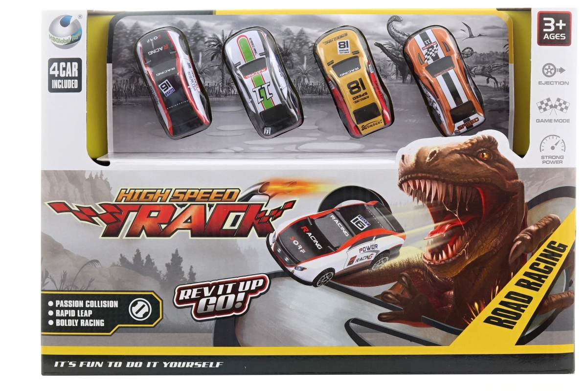 Zažite nekonečnú zábavu s touto vystreľovacou dráhou s dinom! S detským setom, ktorý zahŕňa dráhu a 4 autíčka, je ideálny pre malých nadšencov do autíčok. Vyrobené z odolného plastu, zabezpečujúce dlhú životnosť hračky.