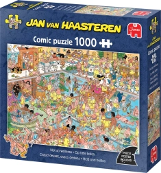 Pocíťte radosť z užívania jedinečného puzzle od renomovaného autora Jana van Haasterena, ktoré je plné humoru a farieb. Jeho diela sú známe svojím charakteristickým štýlom, kde nájdete nečakané detaily ako žraločia plutva či vtipné postavy.