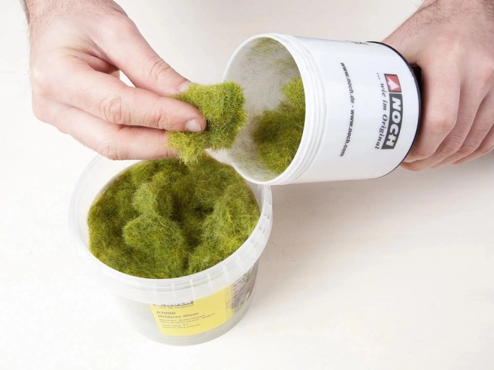 Statická tráva suchá o dĺžke 6 mm je ideálna pre tvorbu verných trávnatých plôch, brehov a svahov na modelových železniciach. Prirodzené farebné odtiene a výška vlákien umožňujú jednoduché kombinovanie s ďalšími typmi statickej trávy.