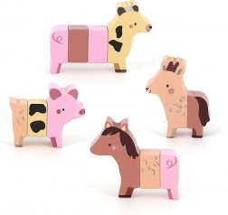 Ako by vyzeral koník skrížený s prasiatkom? Alebo koza s koníkom? Táto zábavná drevená magnetická hračka umožňuje deťom vytvárať vlastné zvieratká, pričom podporuje slobodnú hru a rozvíja kreativitu. Deti si môžu pri skladaní vymýšľať príbehy a zoznamovať sa s rôznymi zvieratkami.