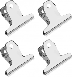 Tieto klipy sú vyrobené z odolného kovu, čo zaručuje ich trvácnosť a možnosť opakovaného použitia. Ich jednoduchý tvar a lesklý, chrómovaný povrch im dodávajú profesionálny vzhľad. Vďaka otvoru v úchyte môžete klipy ľahko zavesiť na tabuľu alebo háčik.