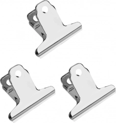 Predstavujeme vám súpravu troch masívnych klipov vyrobených z galvanizovaného kovu, ktorý ponúka vysokú odolnosť proti tlaku. Tieto klipy majú hladké hrany, pružný mechanizmus a otvor umožňujúci zavesenie, čo z nich robí praktický nástroj pre každodenné použitie.