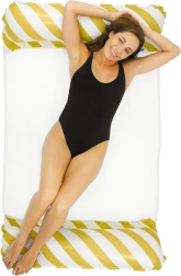 Ergonomický dizajn: Spojenie dvoch nafukovacích vankúšov pružnou a priedušnou nylonovou sieťou poskytuje pololežiacu polohu, v ktorej je telo čiastočne ponorené do vody, čo umožňuje prirodzené ochladenie a komfortné opaľovanie.