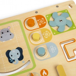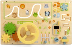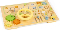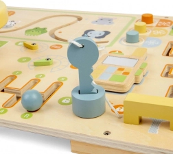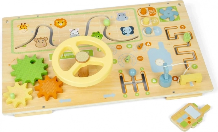 Táto aktivity doska je plná rôznorodých aktivít, ako sú tlačidlá, labyrint, ozubené kolieska, otáčacie a posuvné dosky. Podporuje jemnú motoriku a koordináciu ruka-oko, rozvíja zručnosti pri riešení problémov a porozumenie príčinných súvislostí. Deti sa učia skrze hru a zábavu!