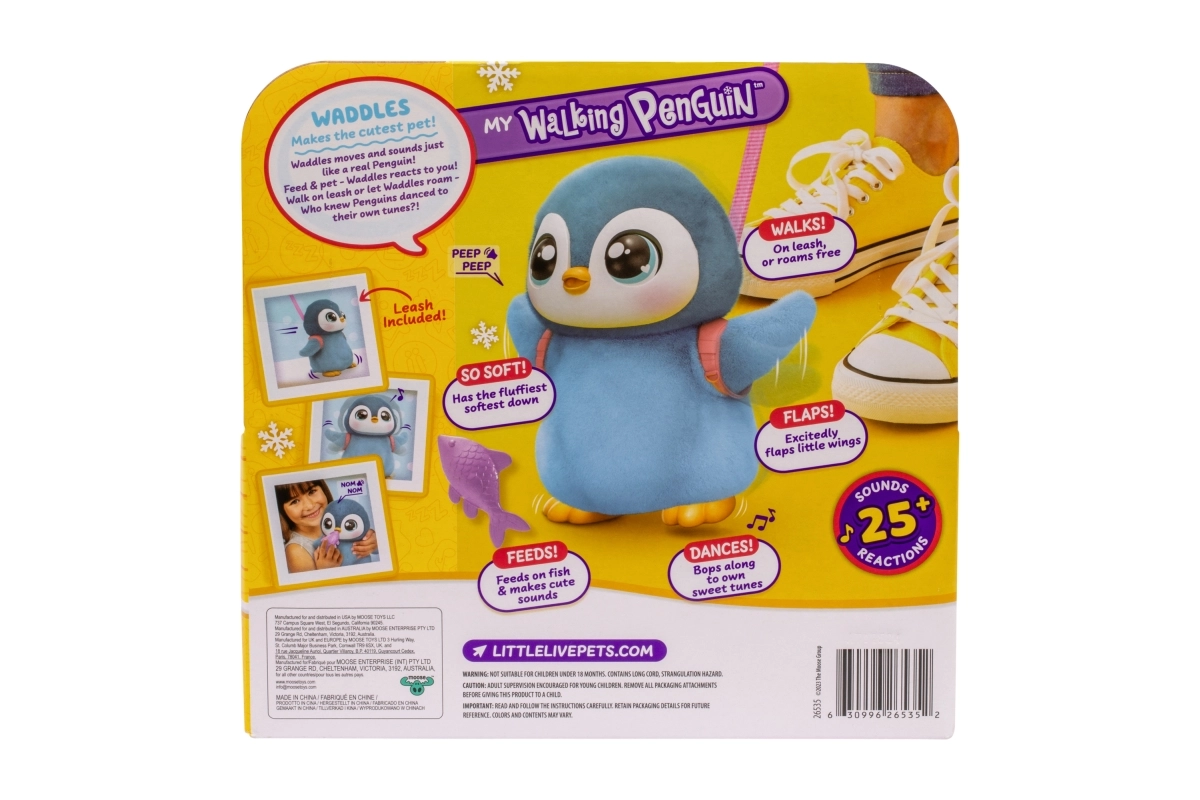 Objavte rozkošného kamarátna pre deti – interaktívneho plyšového tučniaka zo série Little Live Pets, ktorý chodí, máva krídlami a kýva hlavou. Vie cez 25 zvukov a reakcií, reaguje na dotyk, kŕmi sa rybičkami a vďaka mäkkej nadýchanej srsti je ideálny na mojkanie. Súčasťou je odnímateľné vodítko na prechádzky a hranie.