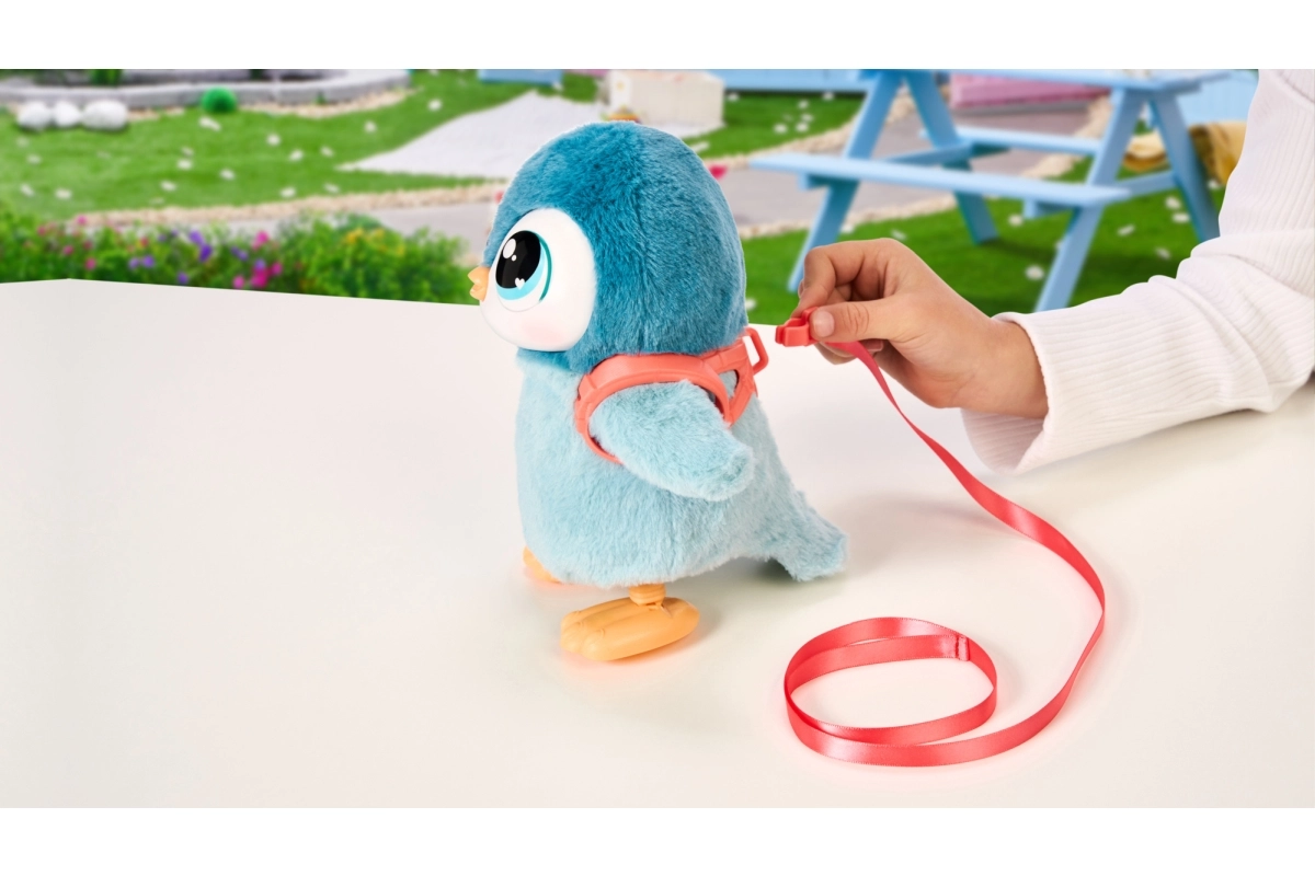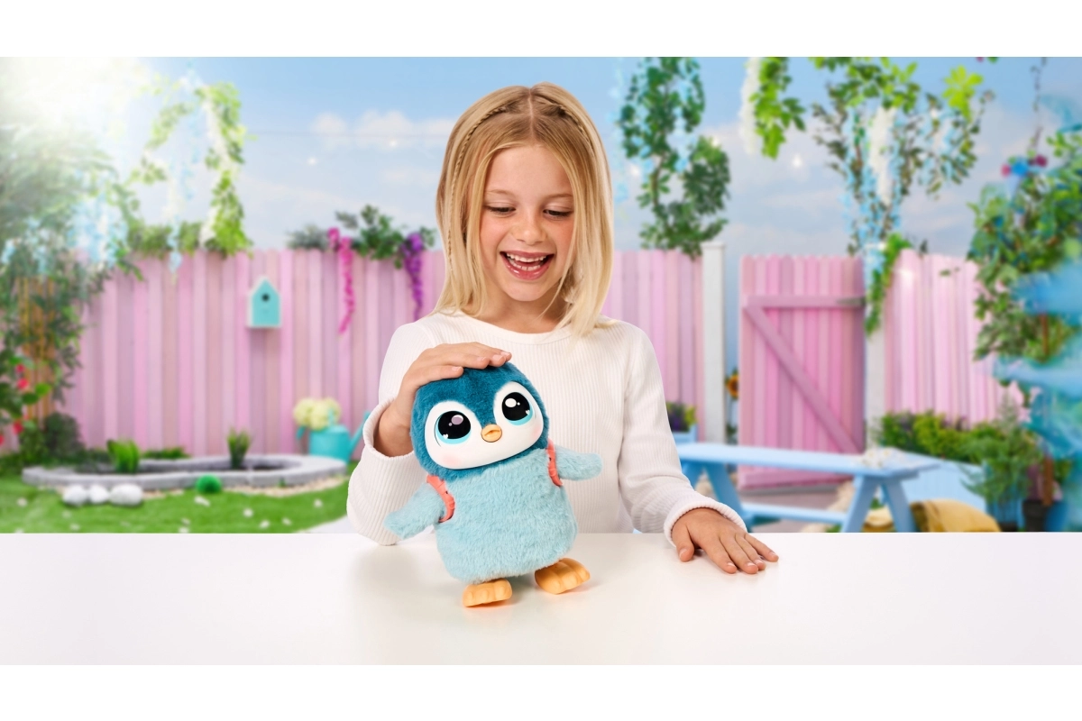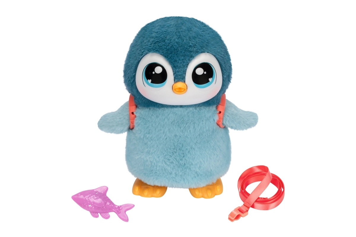 Tento rozkošný tučniak prináša deťom množstvo interaktívnej zábavy. Po pripojení vodítka sa dokáže prechádzať, máva krídlami, kýva hlavou a reaguje na vaše pohladenie. Vydáva roztomilé zvuky – od kŕmenia, chichotania až po kýchnutie – a občas aj vtipné zvuky, ktoré deti pobavia.