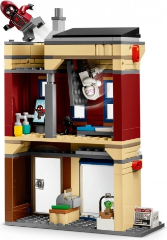 Táto detailná mestská scéna sa skladá z troch prepojiteľných budov: bytu Milesa Moralesa nad klenotníctvom, veže Oscorp a bytu Venoma nad potravinami. Každý modul ukrýva tematické vybavenie a doplnky, ktoré podnecujú kreatívne rozprávanie príbehov, a priehľadné prvky umožnia postavám dynamické pózy ako priamo z komiksu.
