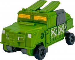 Premeníte akčnú figúrku na robustné zelené bojové vozidlo v pár krokoch. Viditeľné kolesá a panely napovedia, kde preklápať, všetko zvládnu aj deti.
