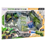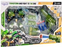 Vstúpte do akcie s dynamickým setom WOOPIE: zelený transformujúci robot, ktorý sa behom chvíľky zmení na bojové vozidlo, a bezpečný penový revolver so šípkami pre skvelú zábavu. Ideálne pre deti od 3 rokov, rozvíja kreativitu, logické myslenie a jemnú motoriku.