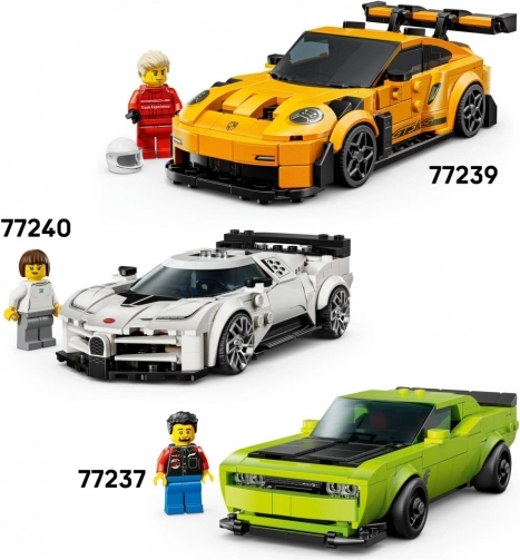 Súčasťou sú 2 minifigúrky vodičov v pretekárskych kombinézach a helmách. Usaďte ich do kokpitu a môžete okamžite vyraziť na trať.