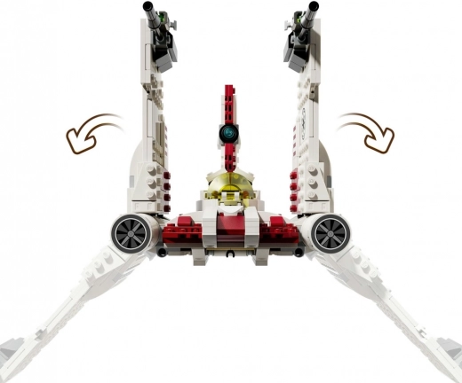 Model v bielo‑červenej kombinácii ponúka funkčné streľátka, otvárací kokpit pre pilota a skvelé detaily inšpirované Klonovými vojnami.