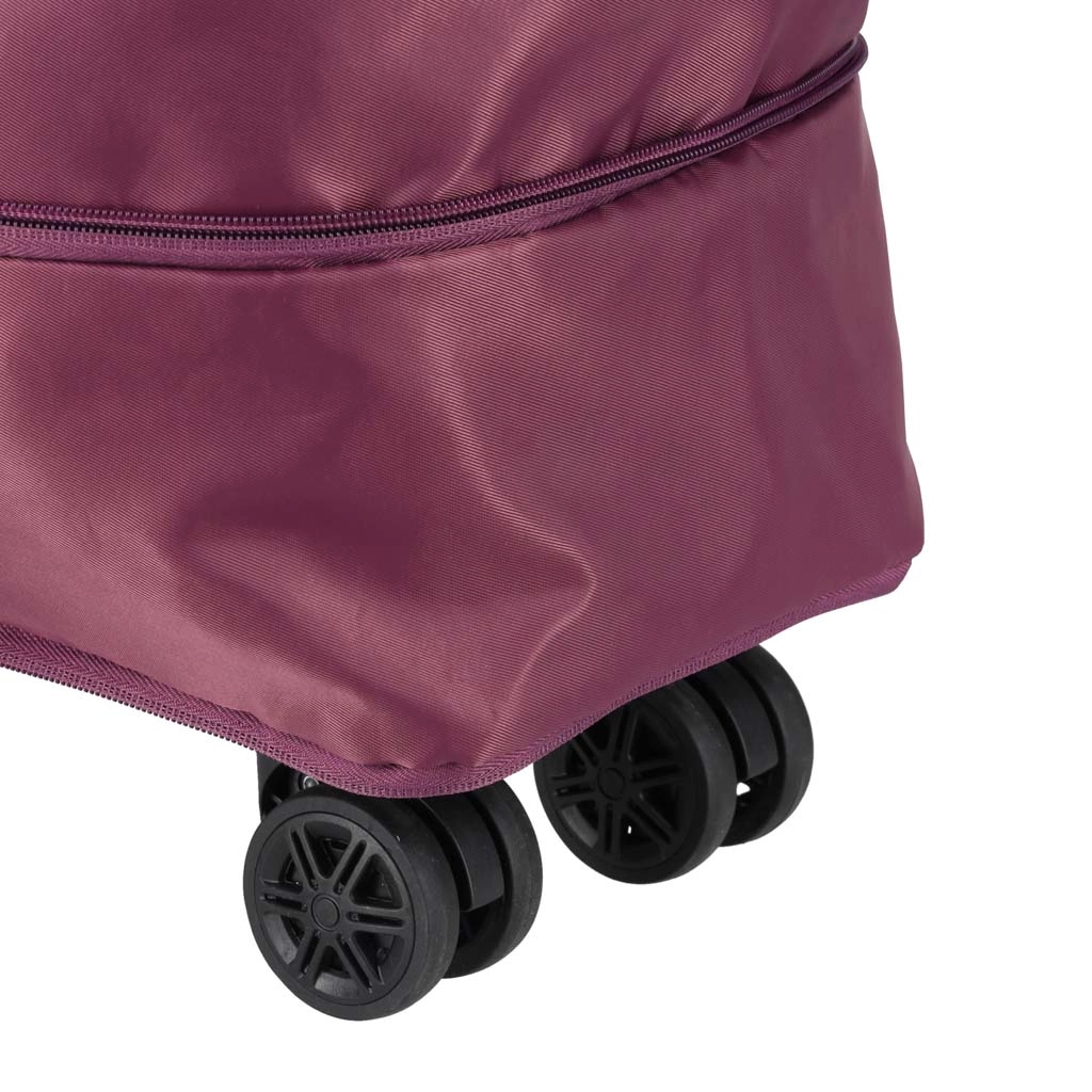 Táto taška je vodoodolná a chráni vaše veci vďaka pevnej polyesterovej tkanine Oxford s dodatočnou vrstvou ochrany. Solídne kolieska z PVC umožňujú stabilitu a ľahkú manévrovateľnosť aj na preplnených miestach.
