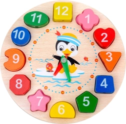 Hodiny majú dva pohyblivé ukazovatele a minútové číselníky, ktoré deti učia plným hodinám a zdokonaľujú ich schopnosť práce s časom. Na ciferníku je veselý tučniak, ktorý upúta pozornosť aj tých najmenších.