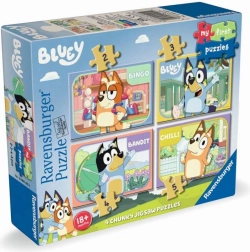 Urobte radosť svojim deťom s touto kreatívnou sadou Moje prvé puzzle Bluey od značky Ravensburger. Skladanie puzzle rozvíja logické myslenie a jemnú motoriku. Táto sada, navrhnutá pre najmenšie deti, obsahuje rôzne varianty počtu dielov, čo umožňuje postupné zvyšovanie náročnosti skladania: